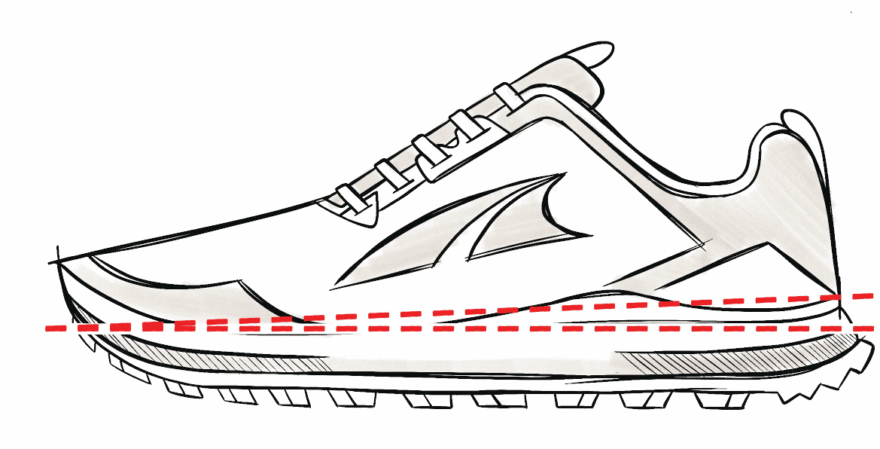 (do 4 mm), tj. pata a špička jsou v cca stejné výšce. To podporuje vzpřímenější postoj, přirozenější došlap na střed/přední část chodidla, aktivnější práci celé spodní části nohy a lepší zapojení lýtkových a stehenních svalů.