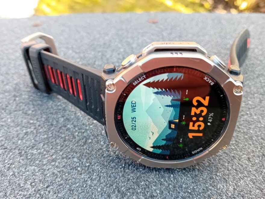 Ovládání umožňují čtyři výrazná tlačítka a samozřejmě také dotykový AMOLED displej. Popisky tlačítek jsou u modelu Ultra 2 umístěné v okruží displeje, a ne na lunetě, jak je tomu v případě T-Rex 3 Pro. To za mě působí u některých ciferníků mírně rušivě a umístění na lunetu mi přijde obecně vhodnější. Navíc, používání tlačítek je naprosto intuitivní, rychle si na ně zvyknete, bez nějakého tápání.