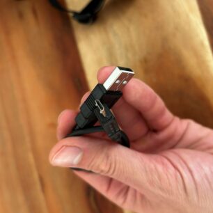 Baterie umístěná na zádech je opatřena ještě třemi LED diodami blikajícími červeným světlem a opět tak zvyšují bezpečnost a současně indikují úroveň nabití světla. Čím více diod bliká, tím více je světlo nabité. Zásadní je, že světlo splňuje normu IPX4, takže lehký déšť je bez problémů. Světlo se dobíjí přes micro USB kabel, který je součástí balení.